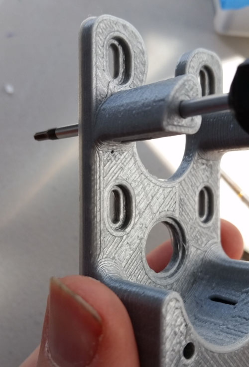 After printing the meduza feeder parts, clean up the base. Make sure the 4 3mm holes can take a 3mm screw. This 2mm hex driver worked perfectly for me - 1 second per hole.