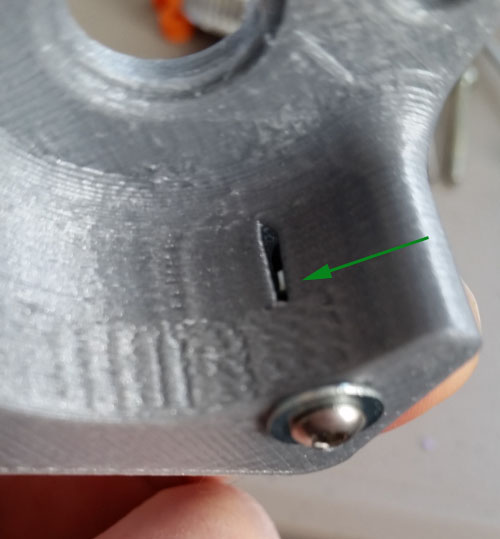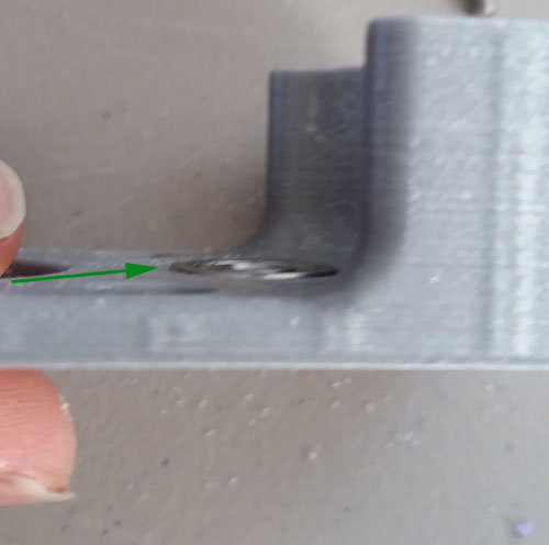The hex holes are tilted such that they get tighter and tighter the further in you go. Leave the 4 hex nuts in the slots and remove the screw and put a shorter screw in from the other side and tighten it up until the nut gets to roughly the position shown arrowed. You want the nut to never move as you will be adding screws into these nuts much later when the base is already assembled against the printer.