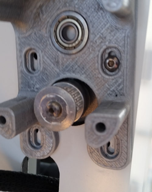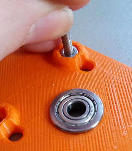 Now prepare the plate. Make sure the nuts fit (they can be very loose - it's fine) and the bearing fits as shown - it doesn't have to fit flush like it needs to with the base. If you will be using the standard UM feeder, make sure it fits nicely in the grooves for it.